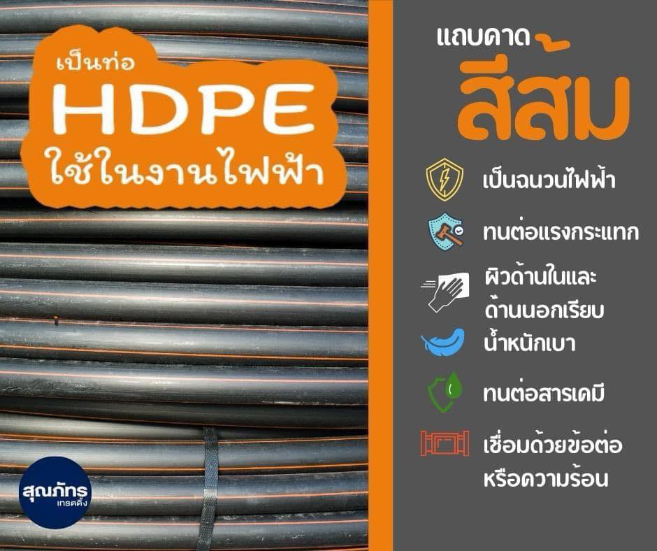 - เกรดวัสดุ PE80 / PE100 PE80 เหมาะกับงานทั่วไป PE100 แข็งแรงกว่า ใช้ในงานระบบน้ำแรงดันสูงและงานสาธารณูปโภค